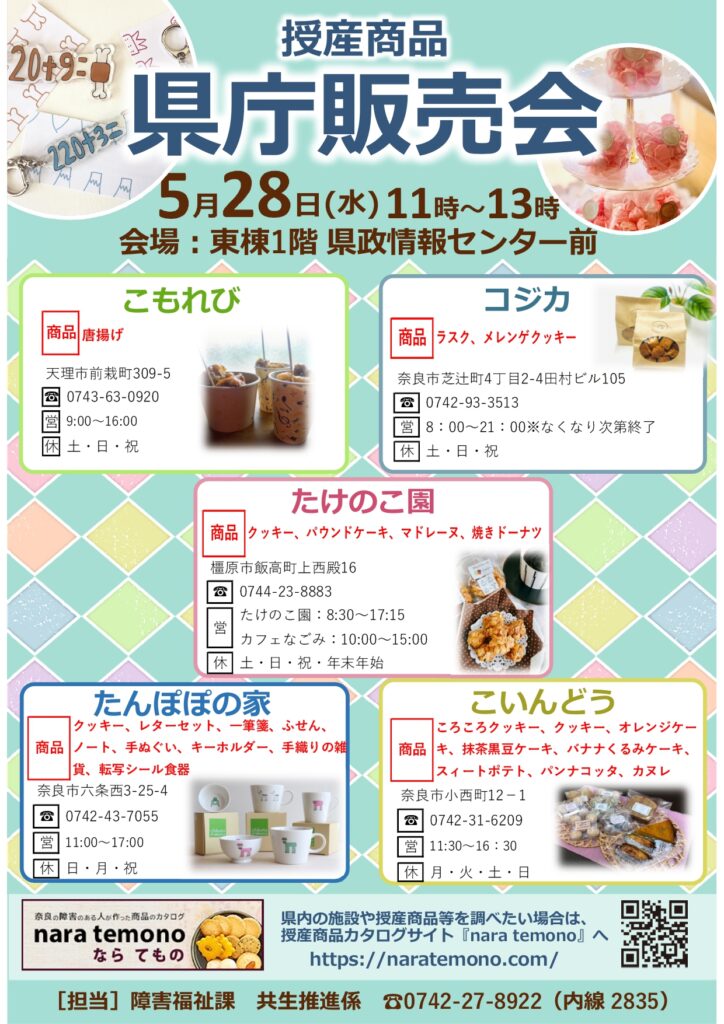 毎月第4水曜日、県内の5つの事業所がお菓子や雑貨を販売しています。