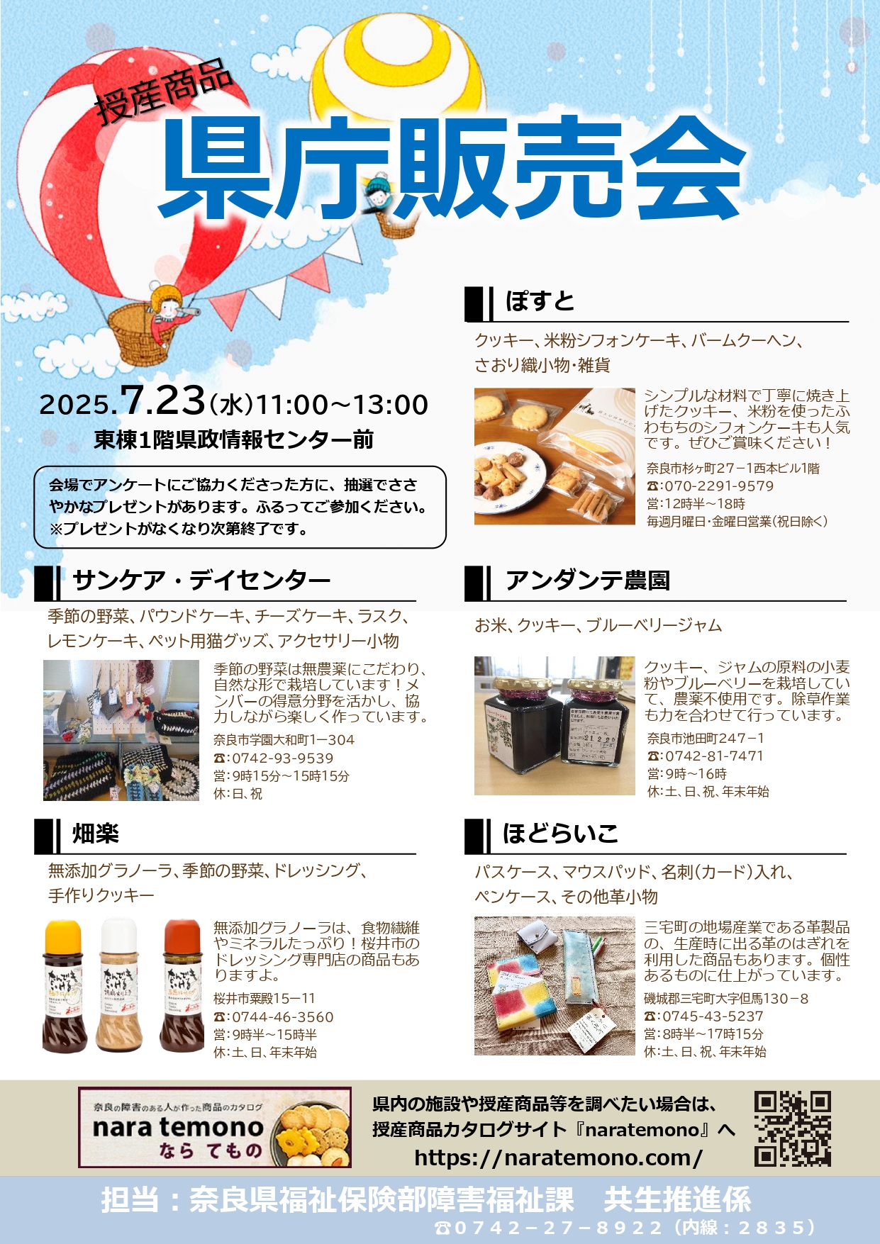 7月23日開催:授産商品県庁販売会のお知らせ